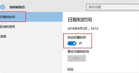 3、点击“日期和时间”选项,打开“自动设置时间”开关,如下图所示: