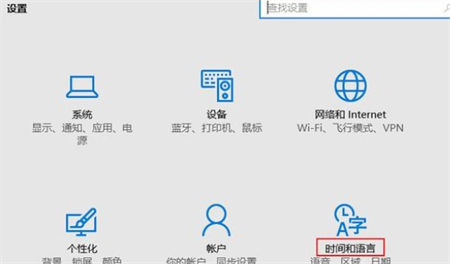2、点击“时间和语言”选项,如下图所示: