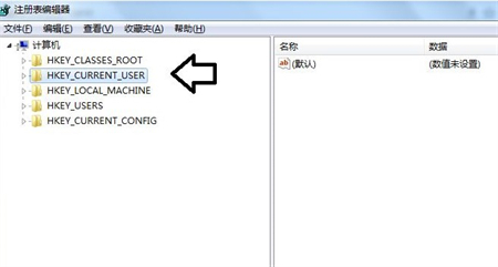 3、依次打开计算机→HKEY_CURRENT_USER;