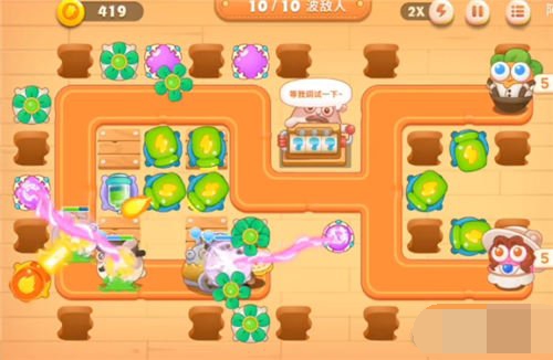 3.可以看到运气不算太差的情况下,维克兔给出的炮台都是不错的,而且这一关其实怪不算特别密集,建议在用瓶子炮防守好的情况下再去玩小游戏,这样可以保证不会漏怪。