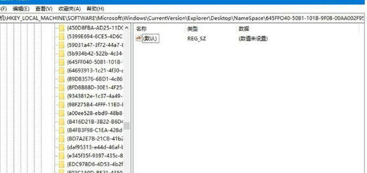 4、在该目录下新建项:{645FFO40-5081-101B-9F08-00AA002F954E}。