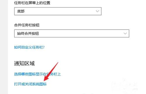 3、然后在右侧找到“通知区域”的【打开或关闭系统图标】;