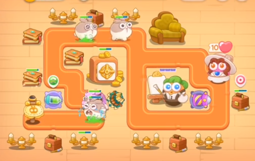 6、第七波开始爱下方位置加箭塔,这个时候要注意冰兔子,被冻住不要慌,右边底下再加一导弹塔升一级;