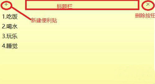 4.使用方法:点击左上方的“+”可以新建便利贴,右上方“x”为删除便利贴,在标题栏位置拖动便利贴到合适是位置;在编辑框内右击鼠标,可以调出快捷菜单,可以根据需要调节不同便利贴的背景色。