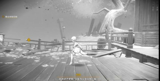 12、沿着楼梯继续往上走,找到万叶的幻影触发剧情,然后根据提示进入最终的房间,在这个房间里不能转动视角不能跳跃不能冲刺,只能一路往左观看剧情