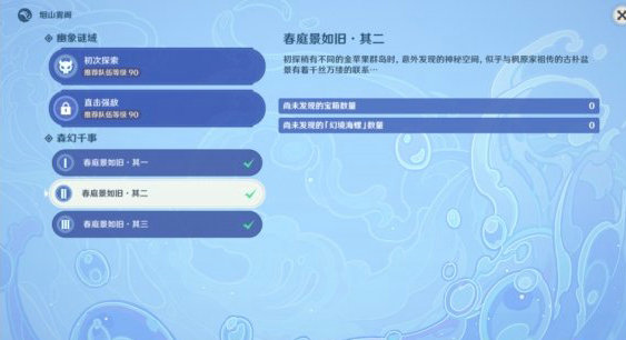 原神2.8版本推出了一个新任务,也就是春庭景如旧任务,这个任务包含了三个小任务,但很多玩家不知道其二怎么过,首先玩家要找到假山石头和雕刻工具,然后打败敌人获得第一个宝箱,接着启动新装置,解锁御守,最后是找到万叶的幻影触发剧情,进入房间完成任务就好了。