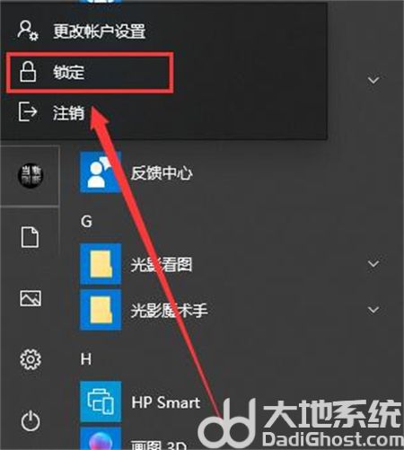 2、然后点击账号头像,有锁定选项,点击可以锁屏。