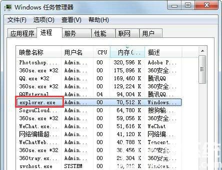 4、在任务管理器进程中找到explorer.exe,选中后点击右键--结束进程;