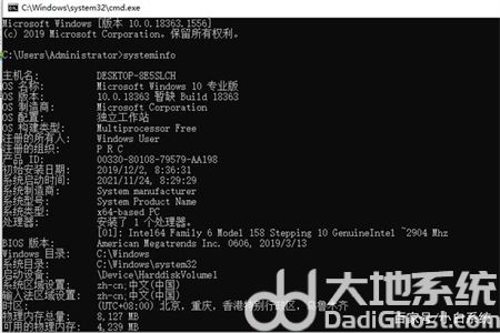 方法一:通过systeminfo命令查看