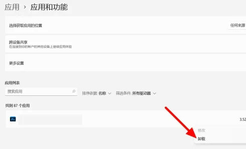 3、进入应用和功能中找到要卸载的应用,点击更多