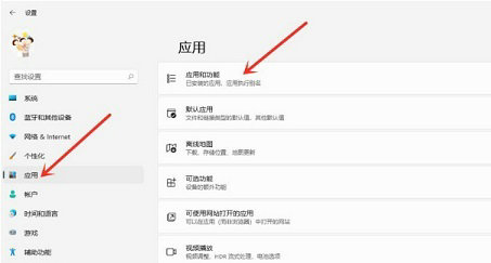 2、进点击左边的“应用”,点击右边的“应用和功能”选项