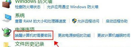 4.在系统和安全里面点击电源选项下面的唤醒计算机需要密码。