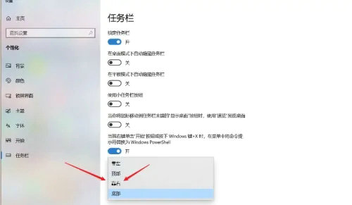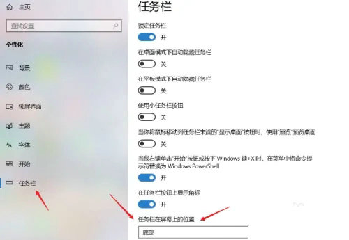 2、在任务栏界面,点击任务栏在屏幕上的显示位置
