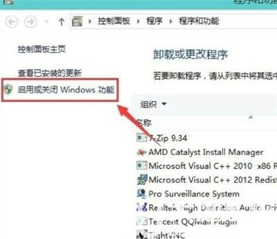 进入程序和功能的窗口中,点击里面的启用或关闭Windows功能。