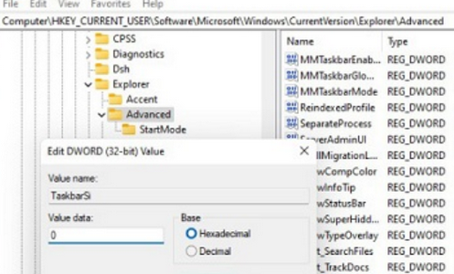 有用户想要为windows11底部任务栏设置宽度,也就是设置任务栏的大小哦,首先用户是打开windows11电脑的注册表编辑器,然后定位到Advanced文件夹,接着新建TaskbarSi的DWORD值的,更改这个数值就能设置电脑底部任务栏的宽度啦,修改后点击保存就能生效啦。