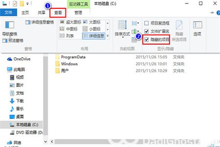 2、首先随便打开一个文件夹,并在“查看”里将“隐藏的项目”给勾选上;