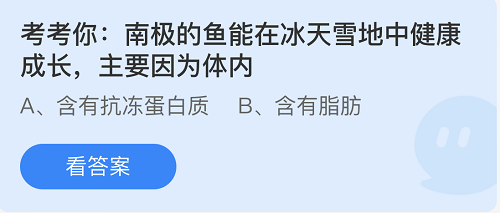 2、考考你:南极的鱼能在冰天雪地中健康成长,主要因为体内?