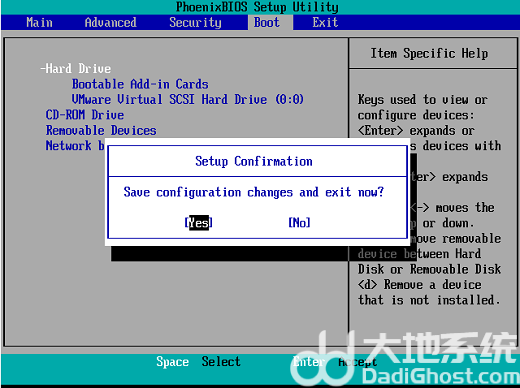 4、然后按F10保存后退出,选择“yes”即可正常进入系统。
