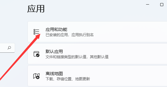 2、进入【应用】界面,点击【应用和功能】选项