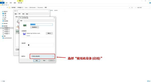 再次弹出窗口,如果设备是禁用状态,选择“使用此设备(启用)”,然后“应用”-“确定”即可。