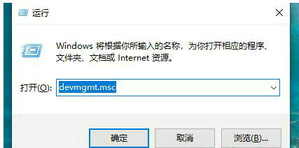 2、devmgmt.msc输入,打开设备管理器。