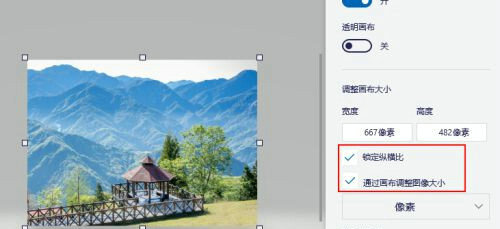 5.在右侧栏"调整画布大小"部分中选择"锁定纵横比"和"通过画布调整图像大小"复选框。