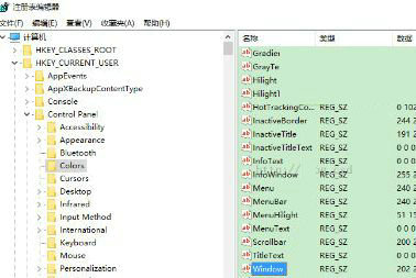2、然后展开并定位到[HKEY_CURRENT_USER\ControlPanel\Colors] windows,然后双击打开;