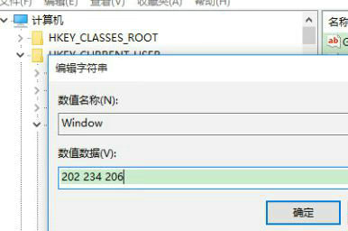 3、将Windows数值设置为202 234 206;