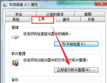 1、右键点击c盘,在弹出菜单里点击属性,选择工具选项卡点击“立即进行碎片整理”