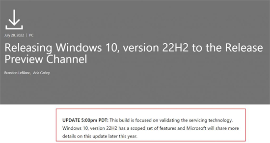 7 月 30 日消息,微软昨日面向 Release 预览频道的用户推送了 Windows 10 22H2 的首个预览版本,并没有公布具体的更新内容。