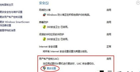 4、找到“用户账户控制(UAC)”,点击“更改设置”。