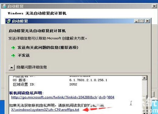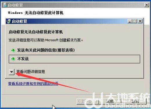 4、再次修复失败以后电脑会提示【启动修复无法自动修复此计算机】,这时候我们点击【查看问题详细信息】;