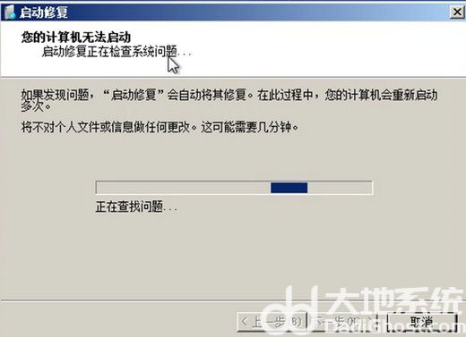 3、之后电脑会启动修复环节,当电脑提示【是否还原】时,选择否。电脑会再次进入启动修复环节;
