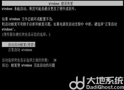 2、在图二的画面中使用方向键选中【启动启动修复】;