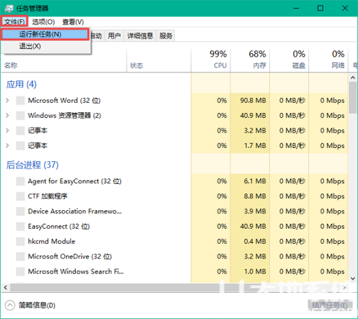 第四步,按下键盘上的【Ctrl+Alt+Delete】快捷键来调出电脑的【任务管理器】窗口,接着选择【文件】选项,然后再选择【运行新任务】功能。