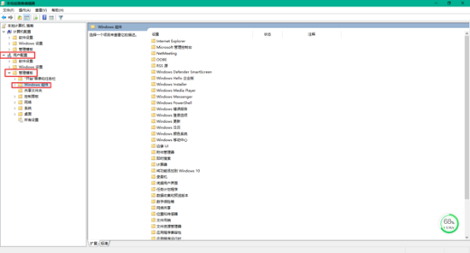 第三步,接着系统会弹出【本地组策略编辑器】的窗口,在此界面的左侧依次展开【用户配置】——【管理模板】——【Windows组件】选项。
