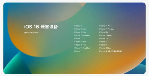 苹果方面已经公布了兼容iOS 16版本系统的机型名单,最新款机型对此全部支持,简而言之就是,iPhone 8以及在其之后发布的机型,全都会得到iOS 16系统更新。老款机型中,iPhone 6s系列、iPhone 7、iPhone 7 Plus以及第一代iPhone SE均无缘新系统,会永远停留在iOS 15版本了。