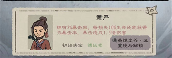 2、萧严:通过绝尘谷-五重镜后解锁。