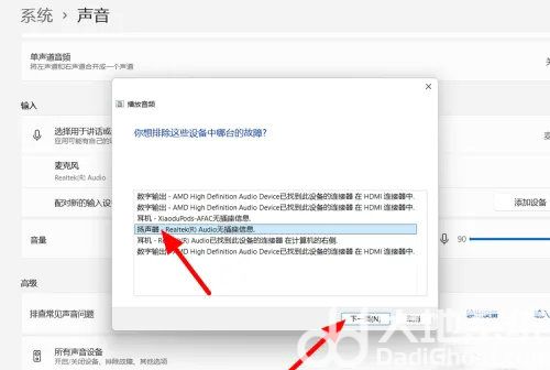 出现选项,选中扬声器,点击下一步。