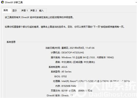 1、以华硕电脑为例,Win键+R 键打开运行窗口,输入【dxdiag】并确定,启动DirectX诊断工具。