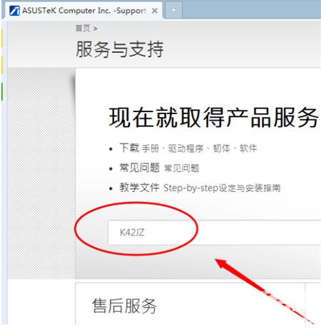 4、搜索笔记本相应的型号,如K42JZ。