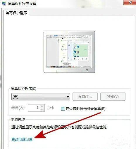 第3步单击[屏幕保护程序]设置中的[更改电源设置]。注意:如果您的计算机使用了第三方主题,则可能无法打开屏幕保护程序中的电源设置。