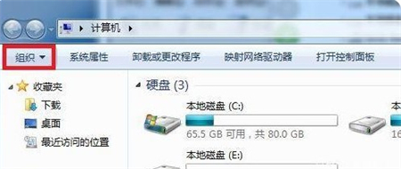 2、点击组织,然后选择“文件夹及搜索选项”