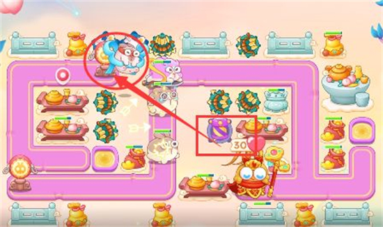 1、这一关我们可以选择的炮塔为毒针、分裂箭、烟花,飞机,太阳,这一关的主要输出是分裂箭+飞机。