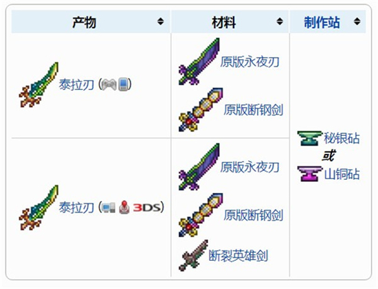 泰拉刃合成方法:原版永夜刃+原版断钢剑—>泰拉刃。