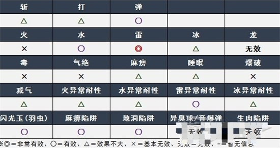 弱点、异常状态、道具耐性