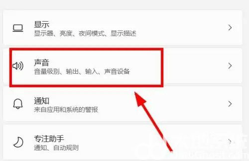 2、在跳转的设置界面中,点击右侧窗口栏中的声音选项