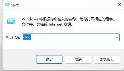 2、然后输入“cmd”并回车打开。