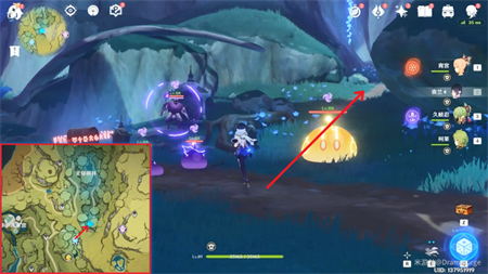 首先,玩家先传送到无郁森林的七天神像,在下图位置,可以看到雷史莱姆和雷丘丘法师。