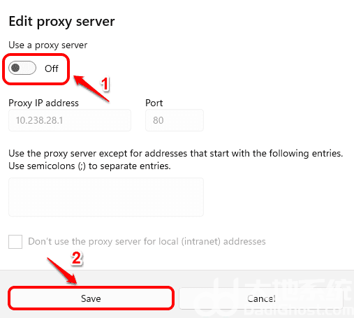 第 3 步:现在将打开一个名为Edit proxy server的新窗口。在此确保与Use a proxy server对应的切换按钮已关闭。点击保存按钮。